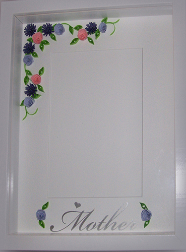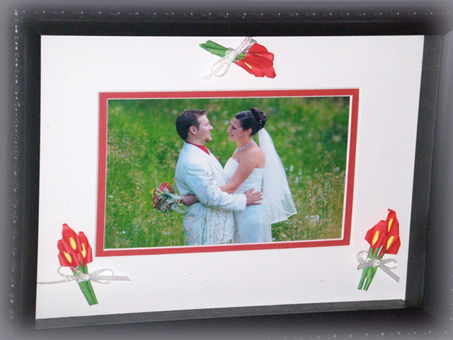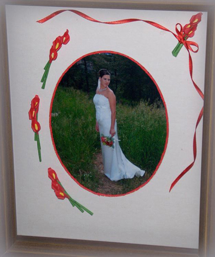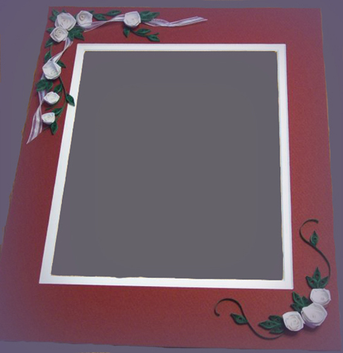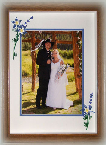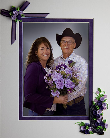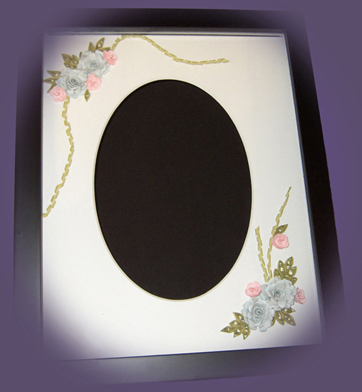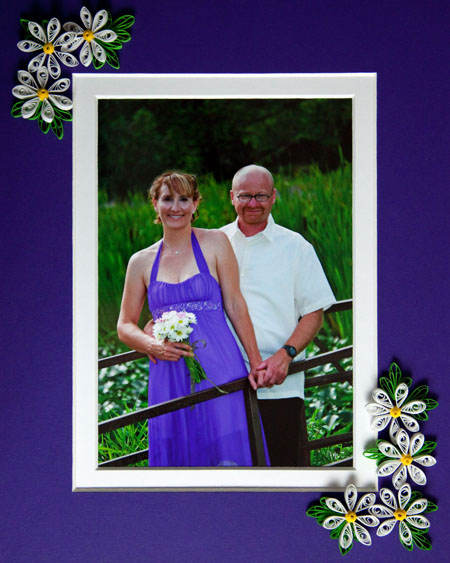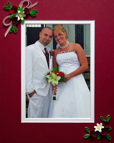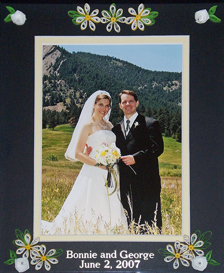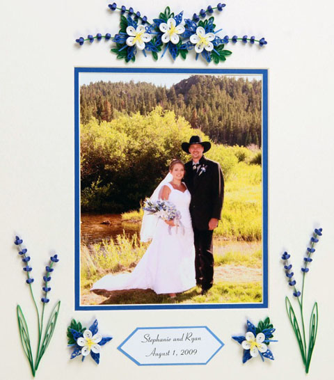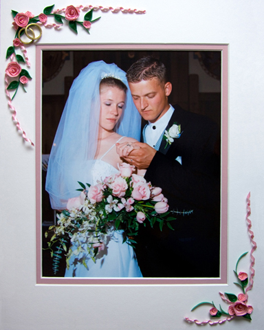 We will customize the mat colors and quilled artwork to match your photo. Are you interested in adding names and dates onto the mat? We can provide you with some options and pricing to make that happen.